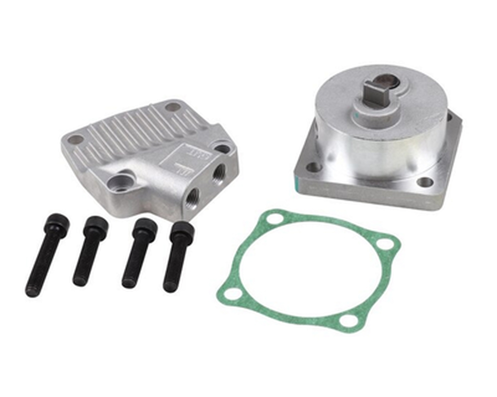 Pumpussa lähtö ja tulo ulkoiselle öljynkierrolle kuten öljynsuodattimelle.