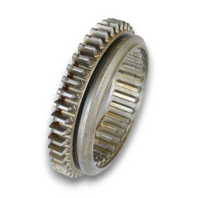 Tämä osa on vaihteiston 1.–2. vaihteen kytkentärengas (Sliding/Operating sleeve). Se on liukuva “rengas”, joka kytkee 1. tai 2. vaihteen valinnan mukaan. Kulunut kytkentärengas voi aiheuttaa huonoa kytkeytymistä, rutinaa ja vaihteen pois hyppimistä erityisesti kuorman alla.
