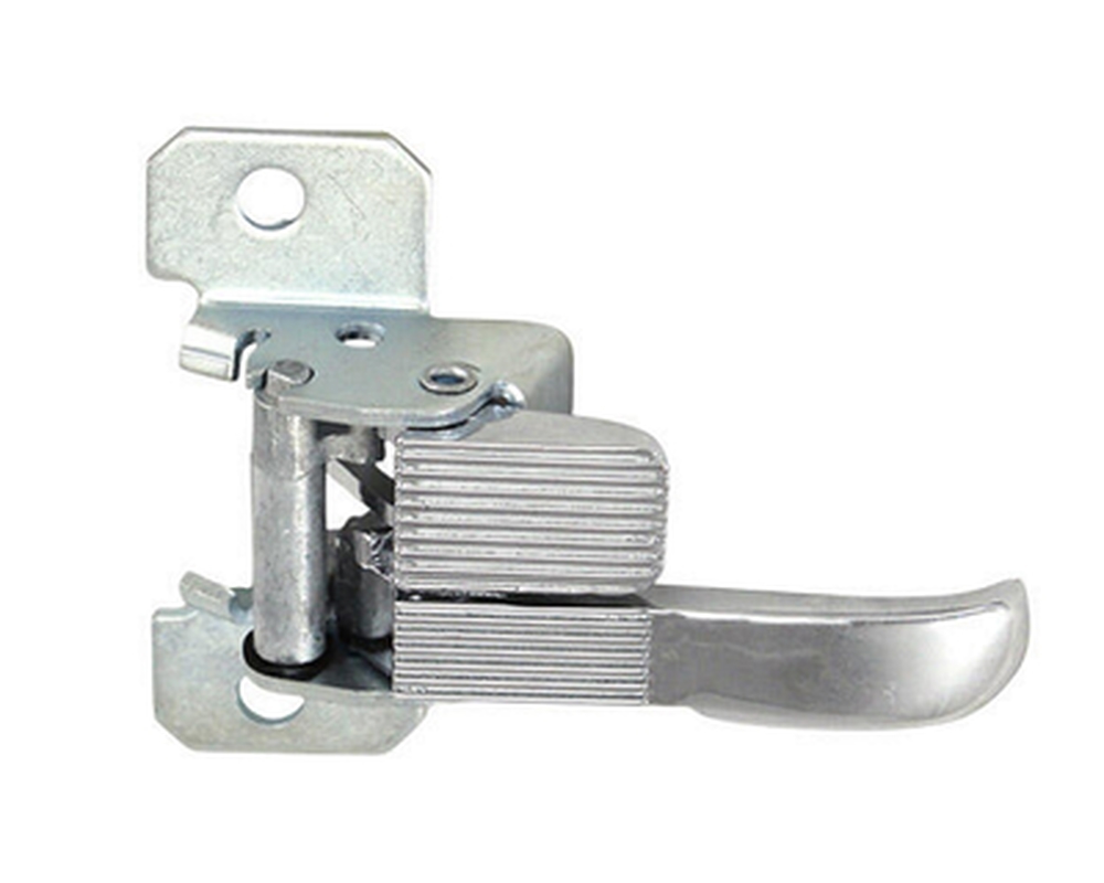 Pieni mutta tärkeä osa: tämä jousi painaa sisäkahvan siististi ovipahvia vasten. Estää kahvaa hölskymästä ja ovipahvia painumasta.