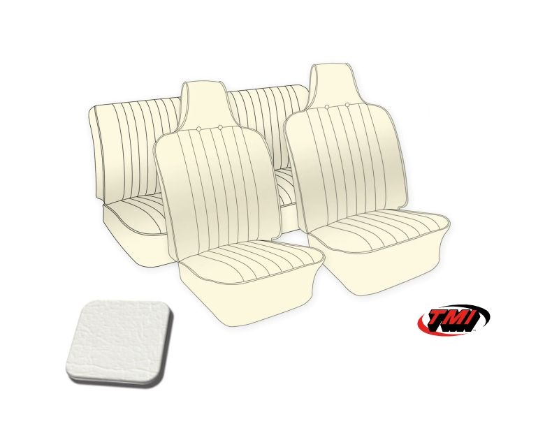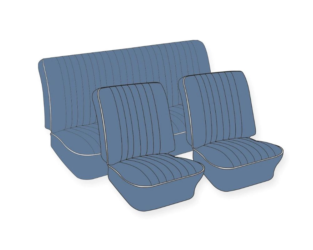 Toimitetaan täydellisinä sarjoina joissa etu- ja takaistuimien verhoilut. Vaalea kanttinauha.