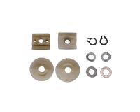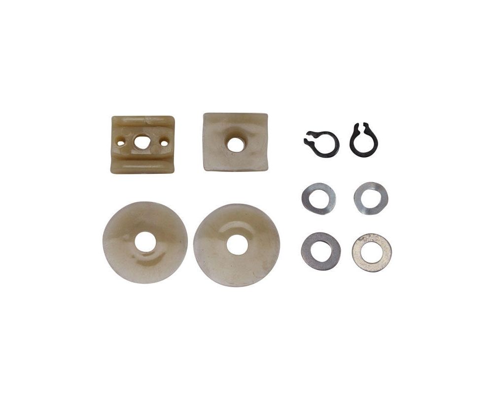 Asennussarja yhteen lasiin. Sisältää puslat ja tarvikkeet lasin ja kiskon väliin.