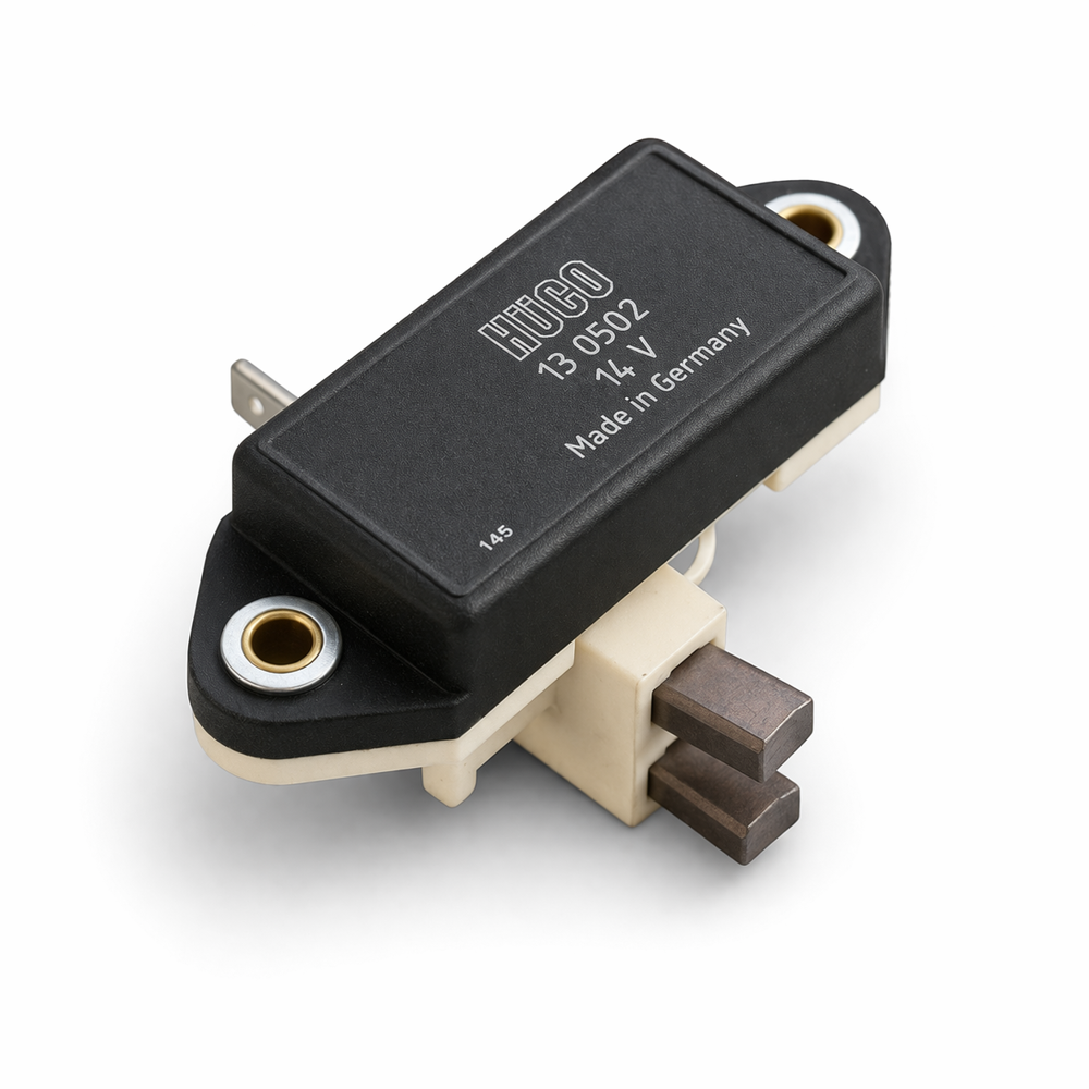 Laturin sisäinen jännitteensäädin hiilillä. Sopii vaihtoon silloin, kun laturin alkuperäinen säädin tai hiilet ovat kuluneet ja latausjärjestelmän toiminta on heikentynyt. Hyvä varaosa laturin kunnostukseen, kun halutaan palauttaa oikea lataustoiminta ilman koko laturin vaihtoa.