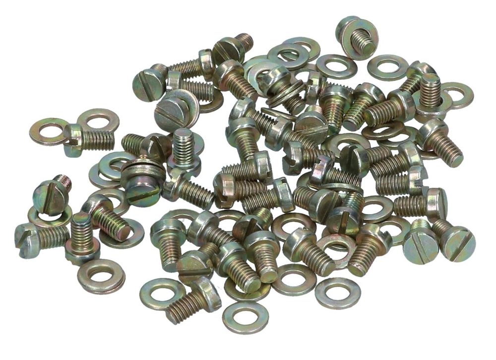 Alkuperäistä vastaavia M6x10mm litteäkantaisia ruuveja + aluslevyjä. Sarjassa 50 kpl ruuvia ja 50 kpl aluslevyä.